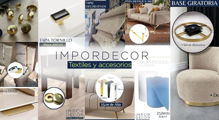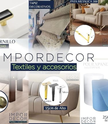 Descubre nuestras impresionantes opciones de Accesorios decorativos, Textiles e Insumos para la fabricación de muebles para tu hogar.
